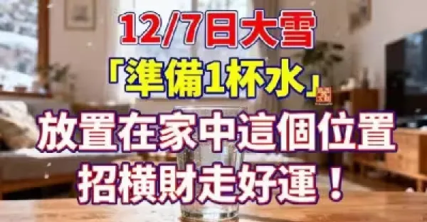 12/7日大雪「準備1杯水」放置在家中這個位置,招橫財走好運