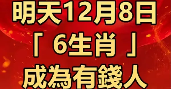 明天12月8號, 三生肖橫財最旺,會發一筆橫財