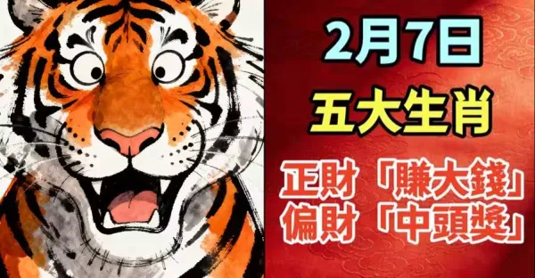 2月7日,五大生肖正財「賺大錢」,偏財「中頭獎」.