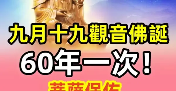 九月十九觀音佛誕,60年一次!觀音菩薩顯靈,4生肖受菩薩庇佑,喜事一件接一件,大發橫財獎,再不接就晚了!