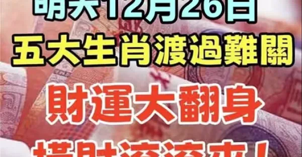 明天12月26日,五大生肖渡過難關, 財運大翻身,橫財滾滾來!
