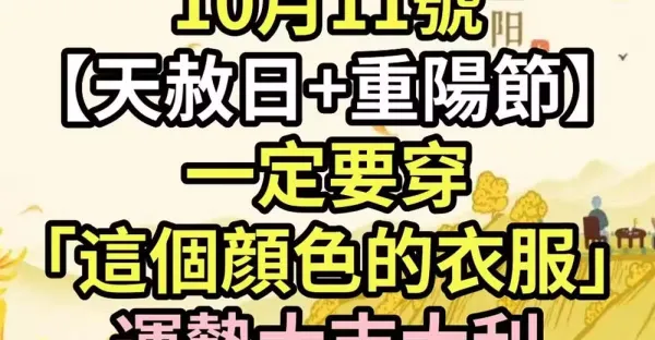 百年難得一見! 10月11號【天赦日+重陽節】一定要穿「這個顏色的衣服」運勢大吉大利, 財運好運不斷!