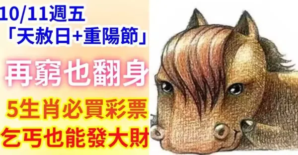 10/11周五「天赦日+重陽節」這5個生肖必買彩票,乞丐也能發大財,尤其這個屬相!再窮也能翻身!