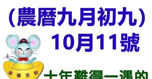 10月11號(農暦九月初九)十年難得一遇的好運勢,好財運的生肖