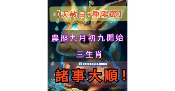【天赦日+重陽節】農曆九月初九開始 三生肖 諸事大順!