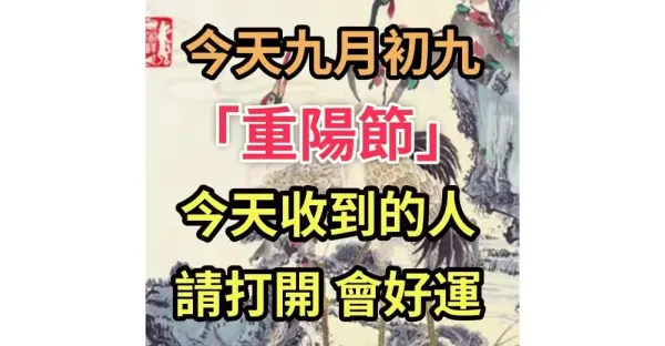 今天九月初九「重陽節」今天收到的人請打開!會好運!