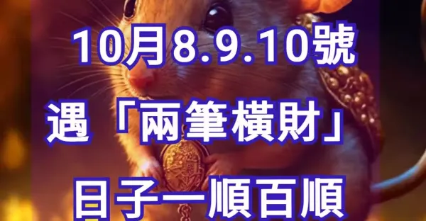 收錢收到累!10月8.9.10號遇「兩筆橫財降臨」日子一順百順的生肖 !