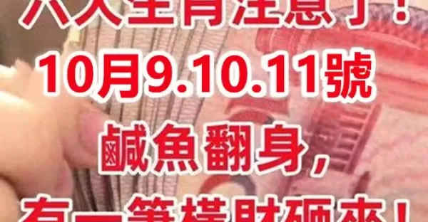 10月9.10.11號鹹魚翻身,有一筆橫財砸來的生肖!