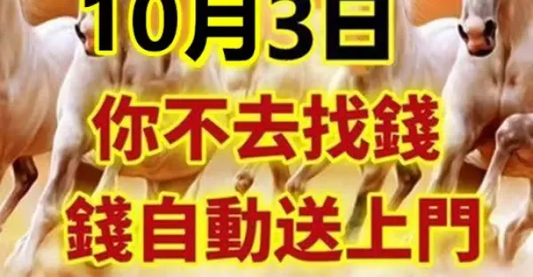 10月2.3.4號財運一馬當先,恭喜6大生肖鈔票滾滾來!