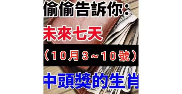 偷偷告訴你:未來七天(10月3~10號)中頭獎勢極高的生肖