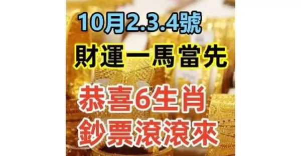 10月2.3.4號財運一馬當先,恭喜6生肖鈔票滾滾來!