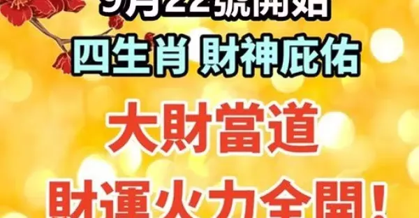 9月22號開始, 四生肖財神庇佑,大財當道,財運火力全開!