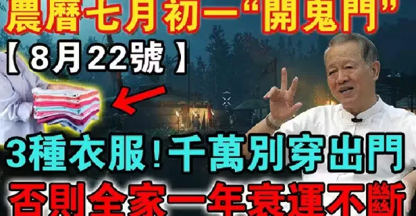 不是迷信!8月22日!農曆七月初一「開鬼門」,這3種顏色衣服,千萬不能穿出門,否則全家一年衰運不斷!
