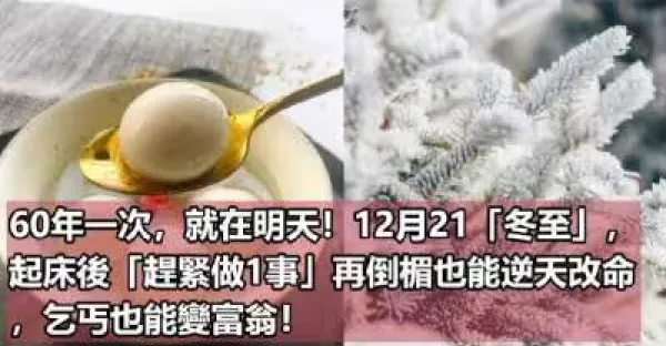60年一次,就在明天!12月21日「冬至」,起床後「趕緊做1事」再倒楣也能逆天改命!,乞丐也能變富翁!