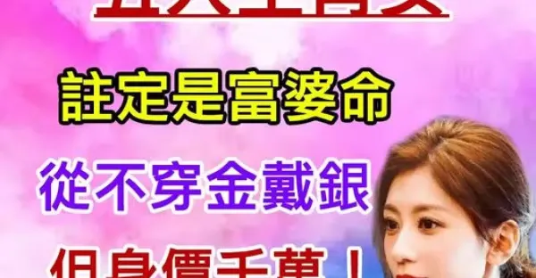 從不穿金戴銀❗ 但是身價千萬,註定是「富婆命」的5大生肖女快來接