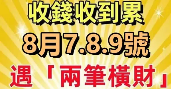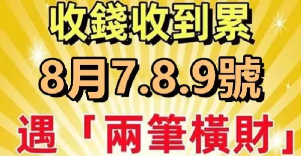 收錢收到累!8月7.8.9號遇「兩筆橫財」日子一順百順的生肖!