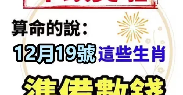 明天 「 12月19號 」 三生肖 橫財最旺!