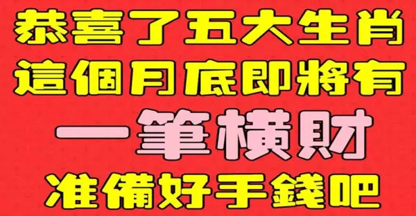 恭喜了五大生肖, 這個月底即將有一筆橫財,準備好收錢吧