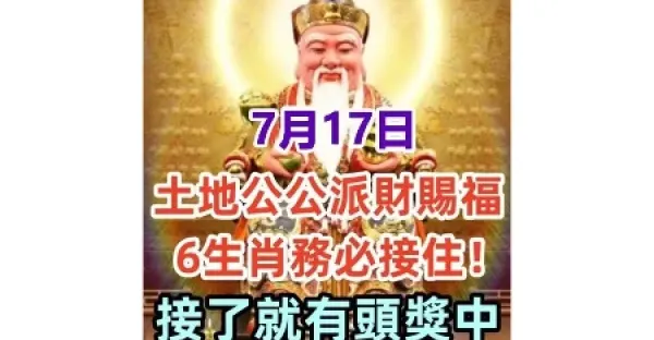 7月17日:土地公公派財賜福,6生肖務必接住!接了就有頭獎中!
