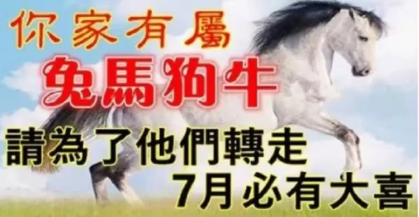 家有屬(兔 馬 狗 牛)7月份必有大喜,請為了他們轉走