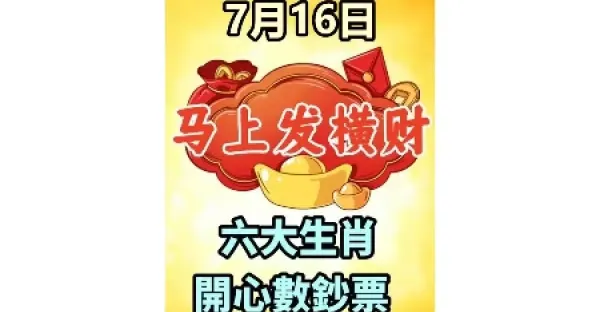 7月16日馬上發橫財,六大生肖開心數鈔票