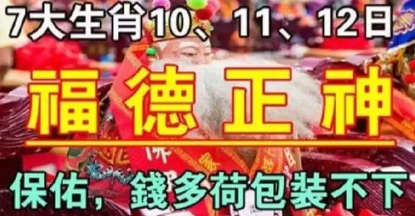 7月10、11、12日喜得福德正神保佑,七大生肖錢多荷包都裝不下