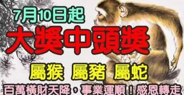 7月10日起百萬橫財天降,事業運順,大獎中頭獎的三大生肖