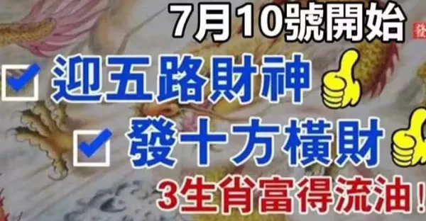 7月10號起財神迎面而來,一路招財納福,好財運不斷的三屬相有你嘛