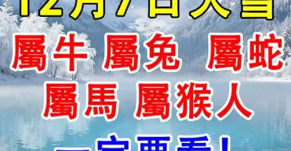 12月7日大雪 「屬牛 屬兔 屬蛇 屬馬 屬猴人」一定要看