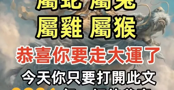 60年一遇!注意【豬、猴、馬、蛇】準備出大事了!!
