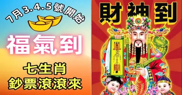 7月3.4.5號開始福氣到,今日七生肖鈔票滾滾來