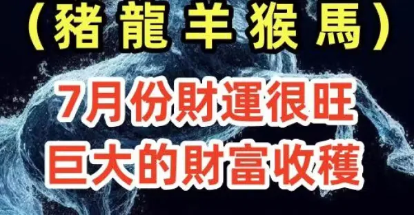 (豬 龍 羊 猴 馬)7月份財運很旺,巨大的財富 收穫,幫他們轉一下