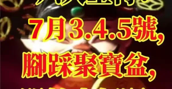 7月3.4.5號開始,腳踩聚寶盆的6生肖,開始走好運 !