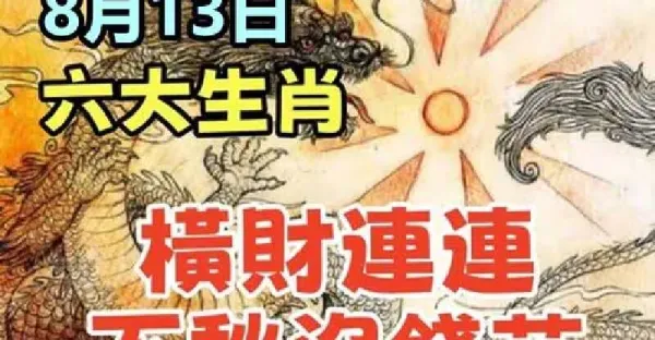 8月13日橫財連連,不愁沒錢花的六大生肖!