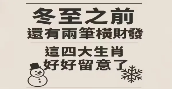 冬至之前 還有兩筆橫財要發 這四大生肖好好留意了