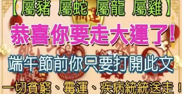 【屬豬 屬蛇 屬龍 屬雞】恭喜你要走大運了!端午節前你只要打開此文,一切貧窮、霉運、疾病統統送走哦!