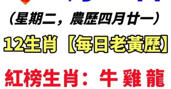 5月29日十二生肖【每日老黃曆】 紅榜生肖:牛 雞 龍 需要注意:兔 虎 豬