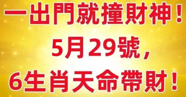 一出門就撞財神!5月29號,六生肖天命帶財!