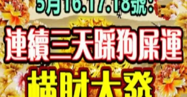 5月16.17.18號連續三天踩狗屎運,橫財大發的生肖