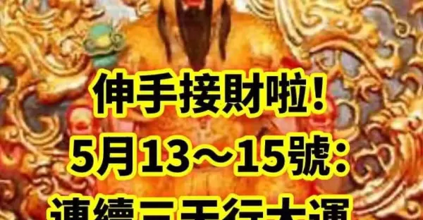 伸手接財啦!5月13~15號連續三天行大運,發大財的生肖!