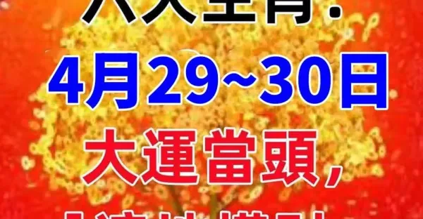 4月29.30號:大運當頭,「遍地橫財」的生肖!