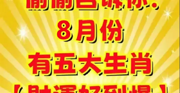六大生肖運勢飄紅:8月6號偏財旺,7號發橫財,8號中頭獎!!