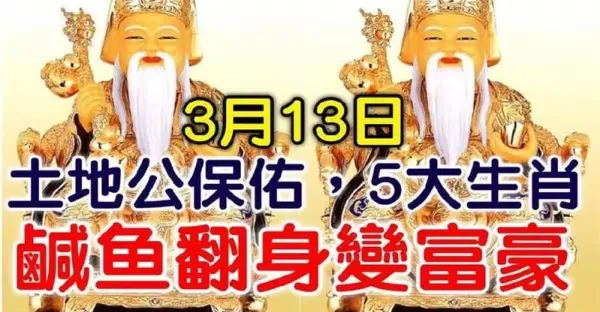 3月13日土地公保佑,大發一筆橫財,鹹魚大翻身變富豪的生肖