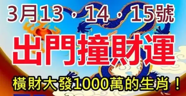 3月13,14,15號出門撞財運,橫財大發千萬的生肖有你嘛