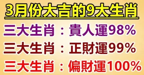 3月份大吉的九大生肖,有貴人運,正財運旺,偏財運多有你嘛