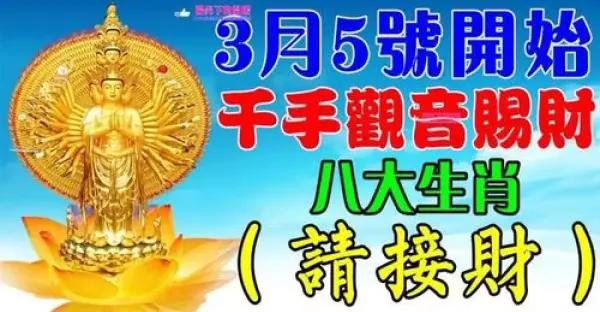 3月5號開始千手觀世音菩薩賜財,八大生肖快來接財