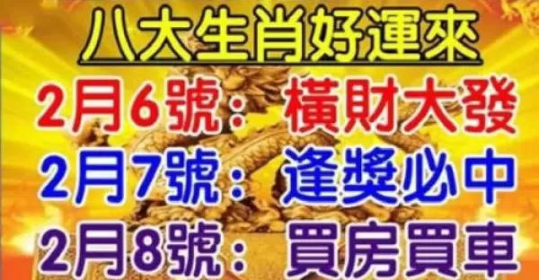 八大生肖好運來:2月6號橫財大發,7號逢獎必中,8號買房買車有你嘛