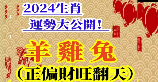 2024生肖運勢大公開!羊雞兔正財、偏財都旺翻天,鼠龍與狗要小心