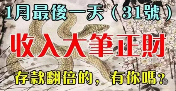 1月最後一天(31號)收入大筆正財,存款翻倍的生肖