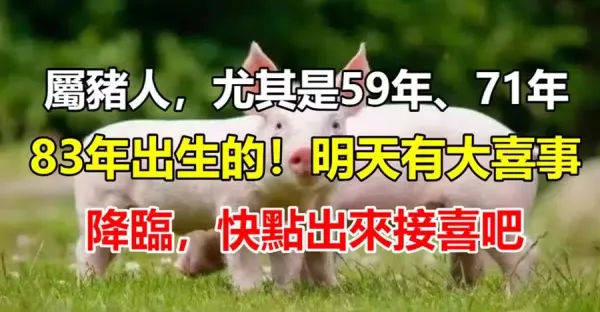 屬豬人,尤其是59年、71年、83年出生的!明天有大喜事降臨,快點出來接喜吧!
